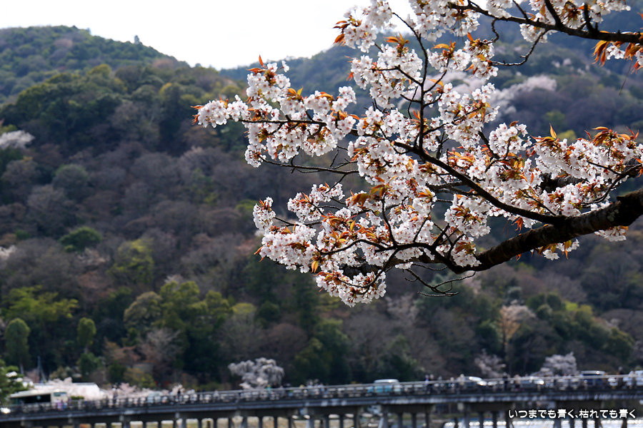 2022年4月1日に撮影した、京都・嵐山・渡月橋周辺の桜の写真です。