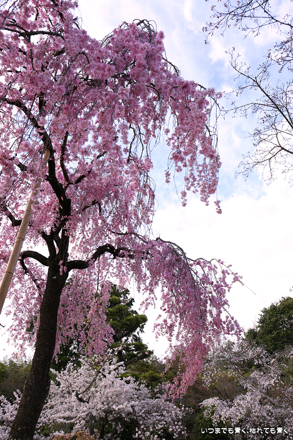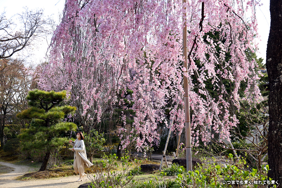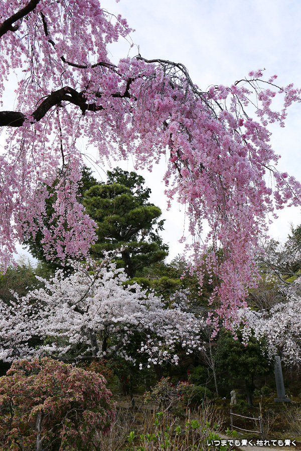 法金剛院は私の好きなお寺のひとつです。そこにある桜が待賢門院桜で、一度見てみたいと思って訪れました。待賢門院桜は見ごたえのある紅枝垂桜で、どこから見ても絵になる桜で、この桜の撮影だけで充分楽しむことができました。