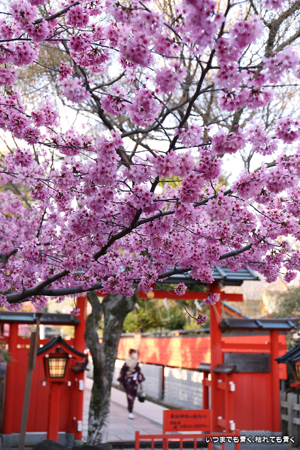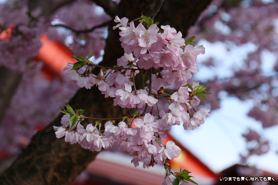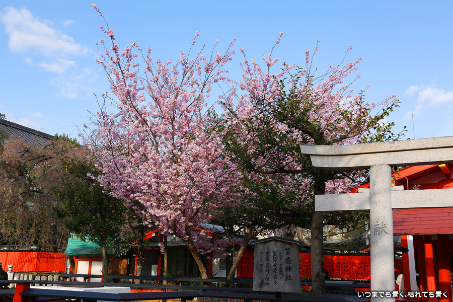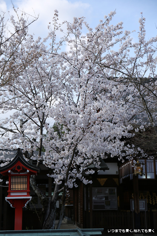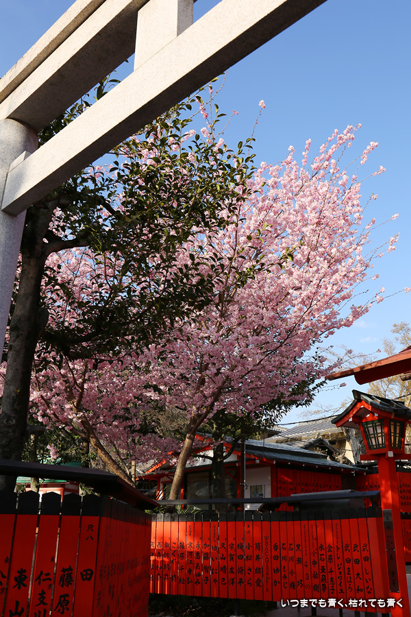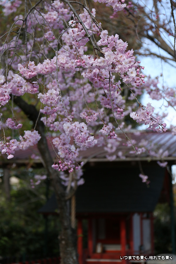 車折神社は渓仙桜というしだれ桜が有名で、それを見たくて訪れたのですが、渓仙桜はすでに散ってしまっていました。しかし、車折神社にはいろんな種類の桜があり、1ヶ月くらい桜が楽しめると言われていて、この日もいろんな桜を楽しむことができました。
