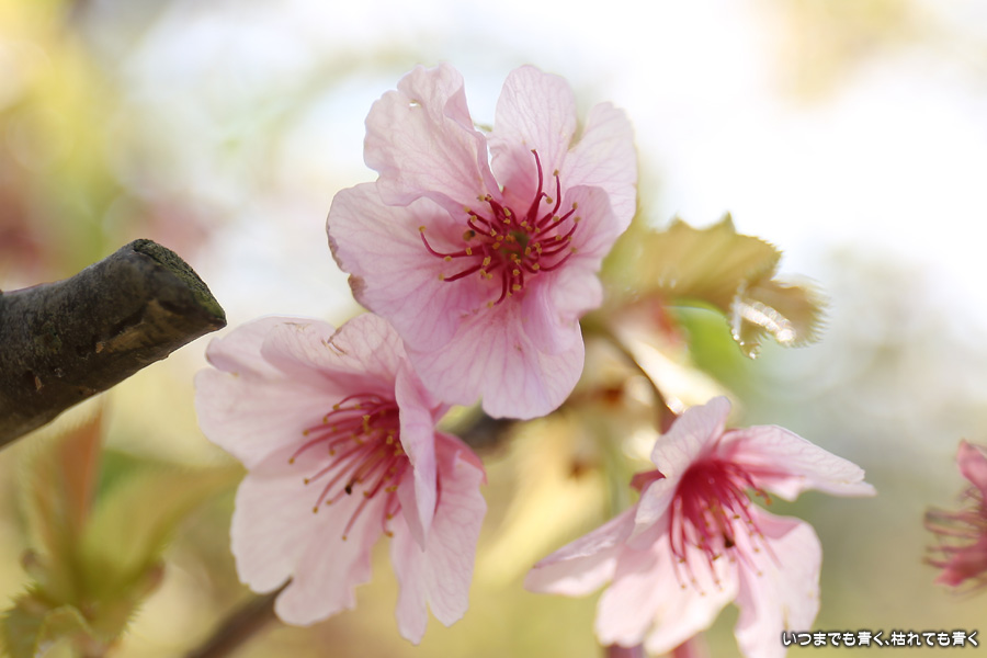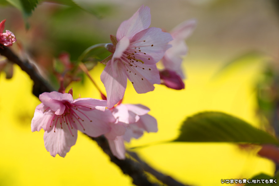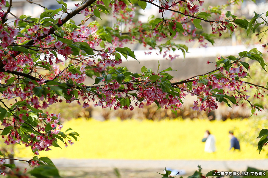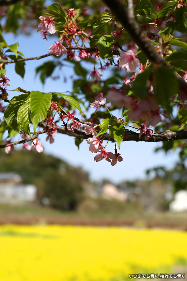 浜松市に河津桜と菜の花の競演をみることができる場所があることを知って始めて訪れたのですが、もう葉桜の状態で残っている花はチラホラという感じでした。事前に調べたらわかったのかも知れませんが、来年に向けての偵察にはなりました。手ぶらで帰るわけにもいきませんので、残っている状態の良い花を見つけて撮影してきました。