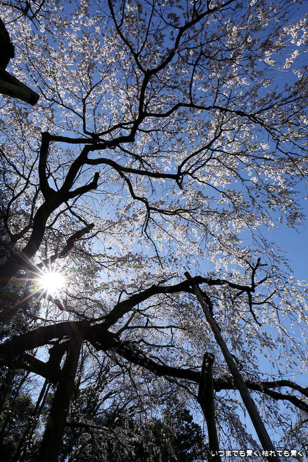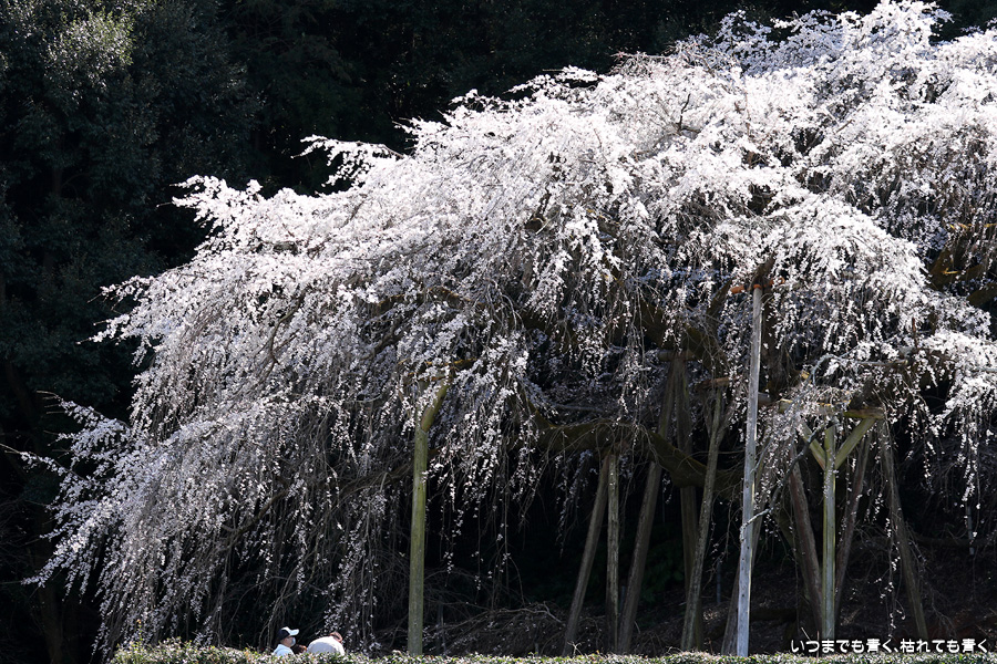 1300年ほど前に持統天皇によりお手植えされたと伝えられている奥山田のしだれ桜(天然記念物)です。今年もコロナ禍によりライトアップは中止とのことです。しだれ桜自体も過去に来た時に比べると花が少なくて全体的に寂しい感じがします。