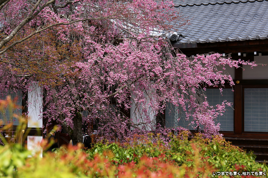 紅葉の季節には来たことのある将軍塚青龍殿ですが、春の桜の季節の将軍塚青龍殿は初めてです。青龍殿の前のピンクのしだれ桜、展望台から眺める桜の花の雲海がとても美しかったです。人も多くなくてのんびりと桜の撮影を楽しむことができました。