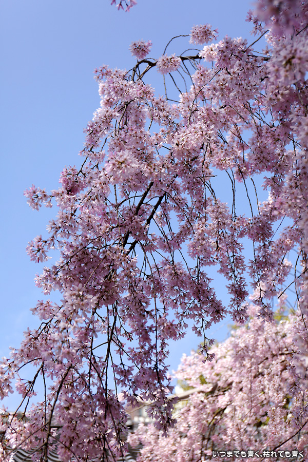 今年は青空のもとの水火天満宮の紅枝垂桜を見ることができました。狭い境内ですので写真の構図に悩んだわりには広角レンズを使わずにこれで納得して撮っていたのが悔やまれます。面倒がらずにいろいろと試してみることが大事です。SNSで、広角レンズで鳥居に向かい合って撮った写真を見て、そういう撮り方もあったかと次の課題もできてしまいました。