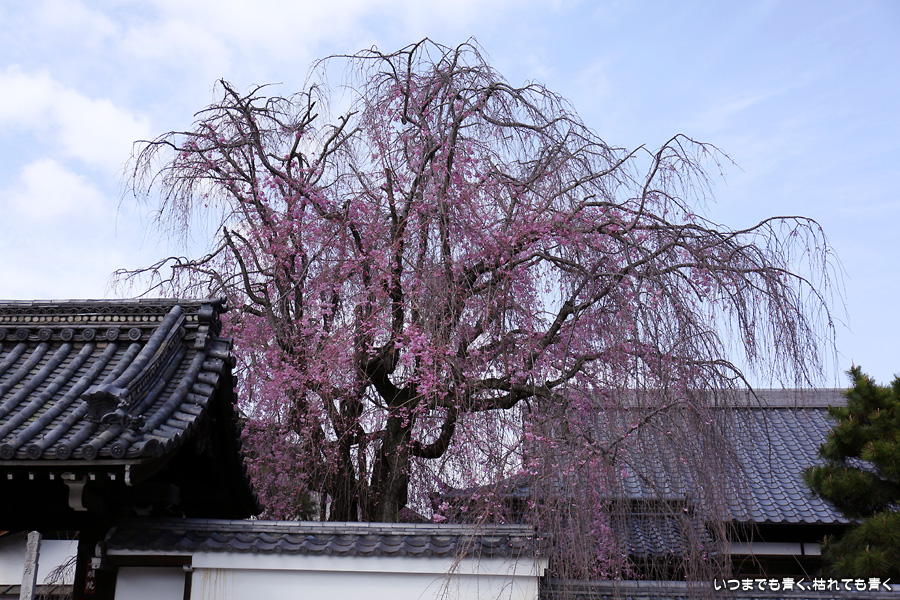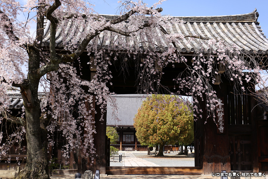 妙覚寺は桜の名所というわけではありませんが、本法寺・水火天満宮から妙顕寺に行く途中にあるので、今年も大門前のしだれ桜の写真を撮影しました。今回は青空なので、桜は少なくても華やかな感じがします。御朱印は今までは若い僧侶の方ばかりでしたが、今回は年配のご住職が対応していただきました。いろいろと話をしていただきましたが、私には難しくて相槌を打つのが精一杯でした。