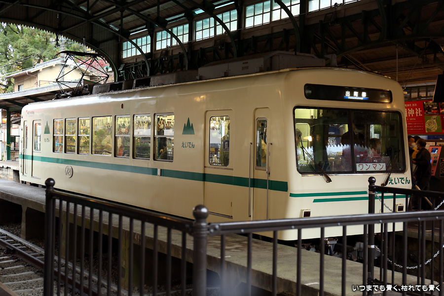 瑠璃光院に行くために、宝ヶ池駅から八瀬比叡山口駅まで、初めての叡電電車叡山本線に乗車しました。たった二駅分だけなので乗り鉄を楽しむには短すぎました。