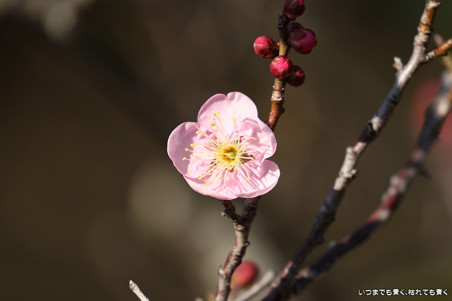 暖かくて天気の良い休日だったので、夕方に一時間ほど平芝梅林公園に出かけてみました。平芝梅林公園には毎年来ていますが、去年ここで写真を撮っていたのが昨日のことのように鮮明です。梅の花はまだちらほら咲いている程度ですが、咲いているきれいな花をさがしてつぼみと一緒に撮るというのは今しかできません。