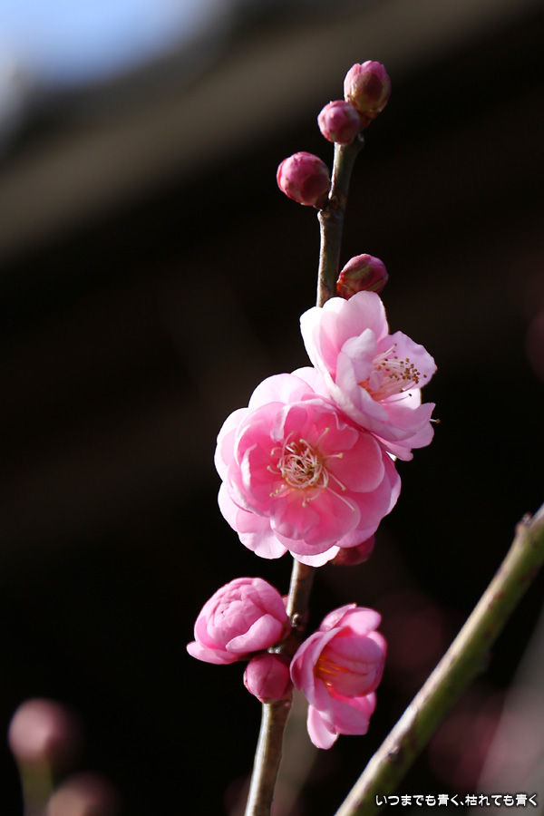 2023年2月16日(木)に撮影した、愛知県岡崎市・岩津天満宮の梅の花の写真です。