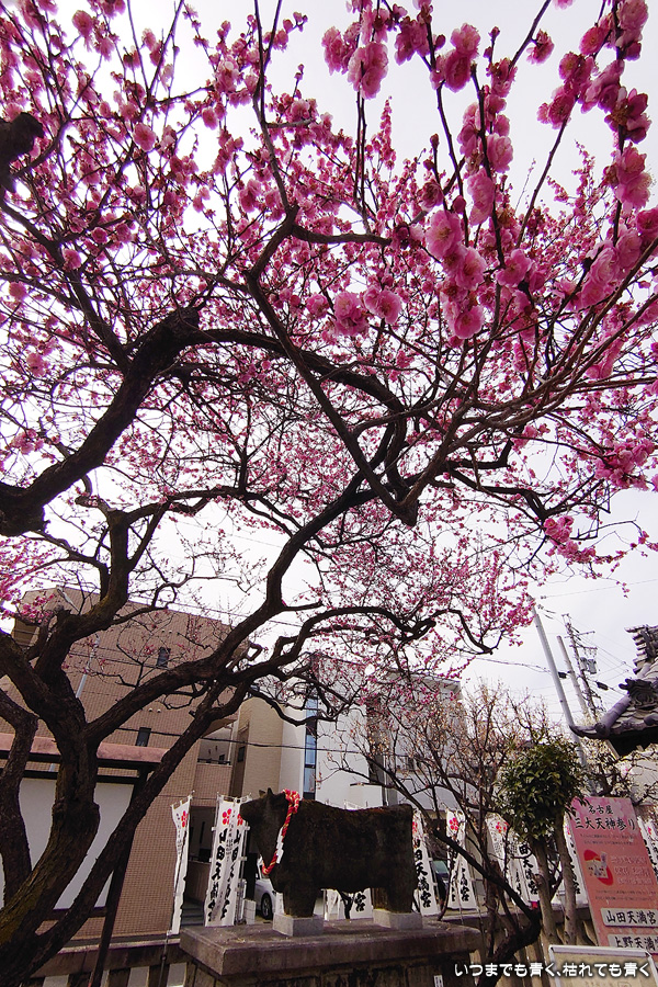 2023年3月4日(土)に撮影した、愛知県名古屋市・山田天満宮の梅の花の写真です。