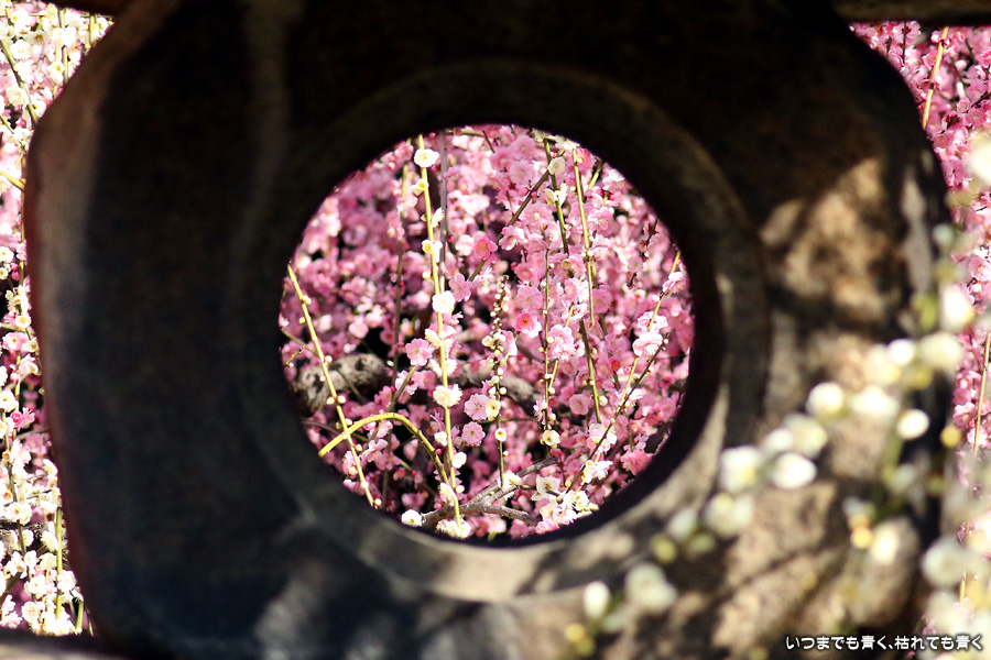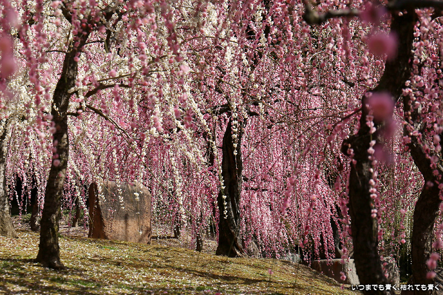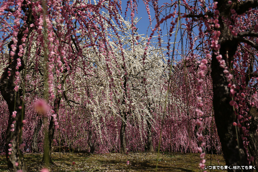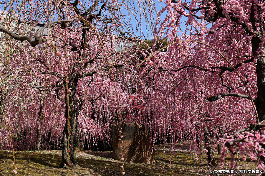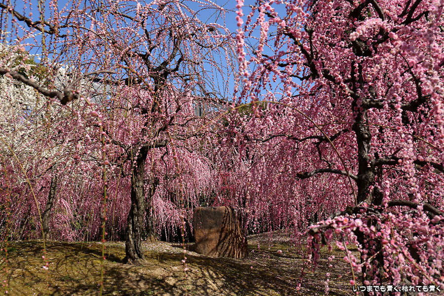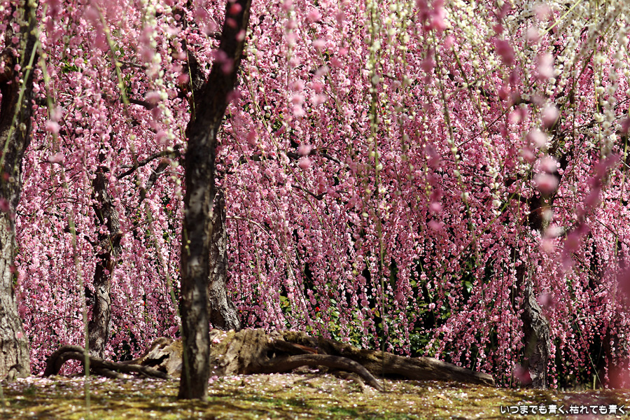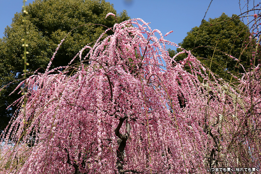 2023年3月7日(火)に撮影した、京都府京都市・城南宮のしだれ梅の写真です。