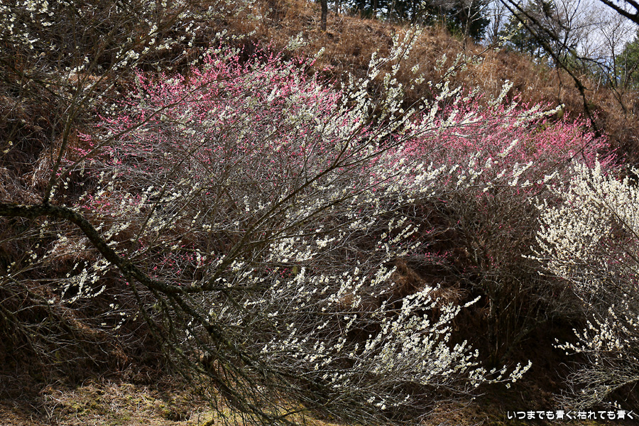 同じ市内でありながら自宅から35kmも離れたところにある最光院の梅林です。最近は、ウメノキゴケの影響なのか花の勢いがあまりなかったのですが、今年はお寺に近いところはかなり以前の状態に戻ってきているような気がしました。山の上の展望台からの眺めはととても美しかったです。