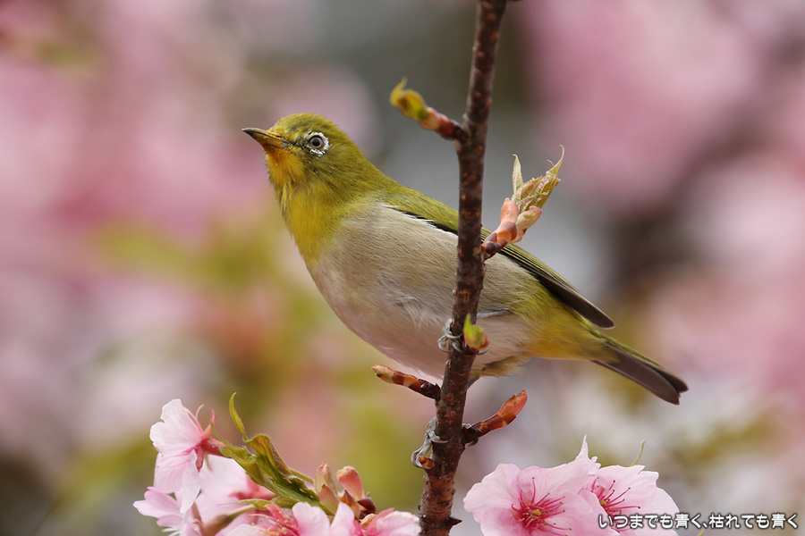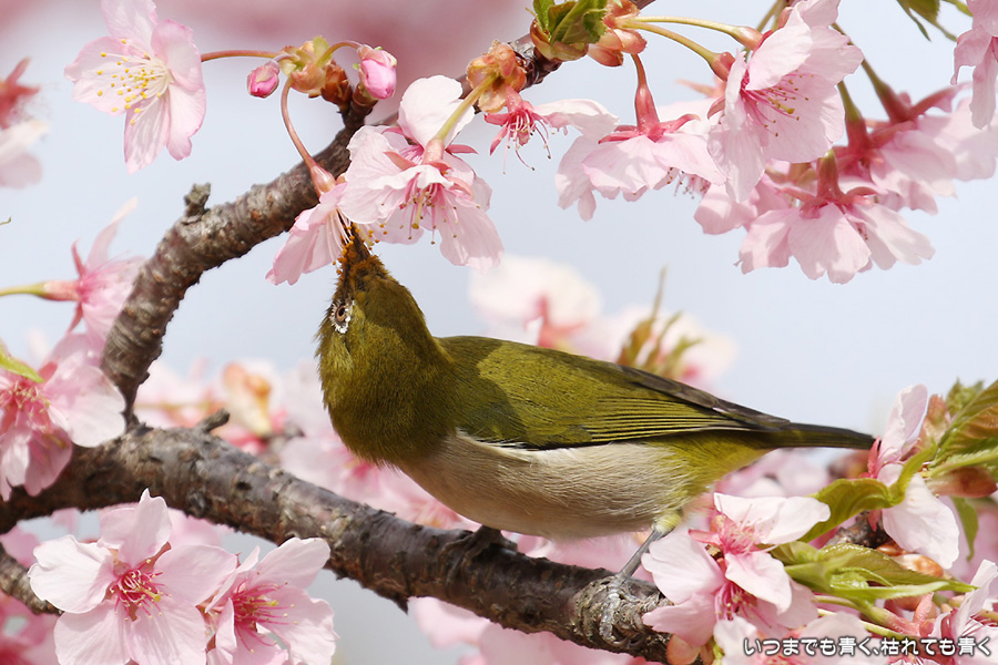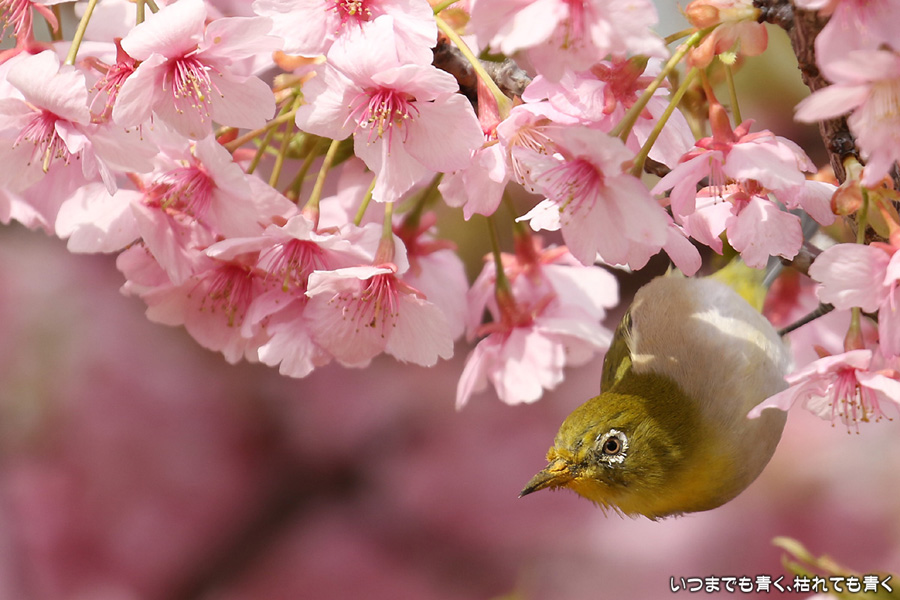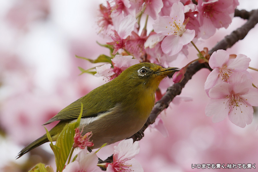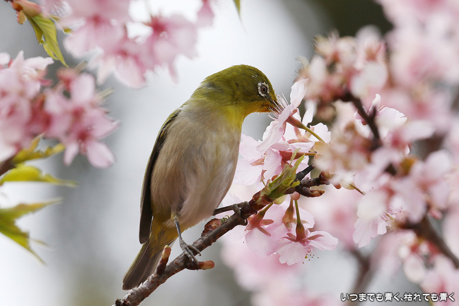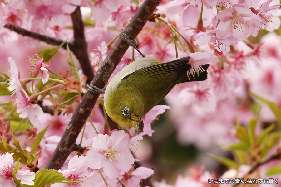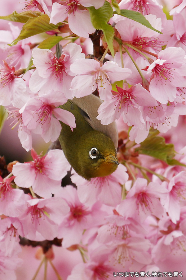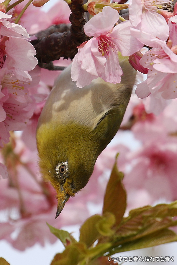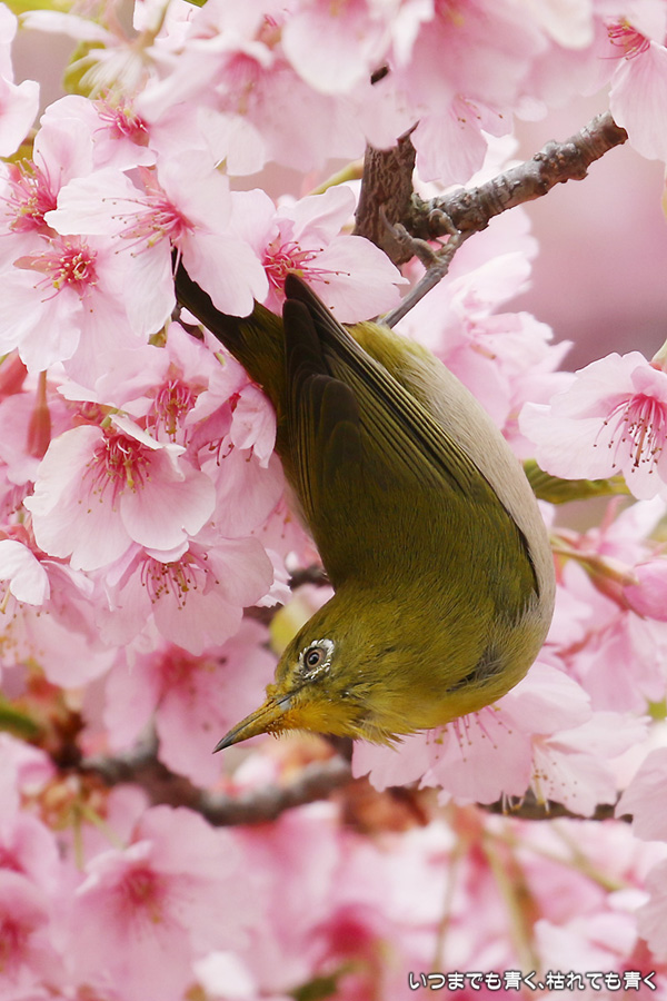 一宮の萬葉公園の河津桜が見ごろで野鳥たちもよく集まっていると聞いて、さっそく行ってきました。見ごろと聞いたのは数日前だったので、河津桜自体は葉が出てきているものもありましたが、メジロは次から次にやってきて撮影に飽きることなく楽しい時間を過ごすことができました。