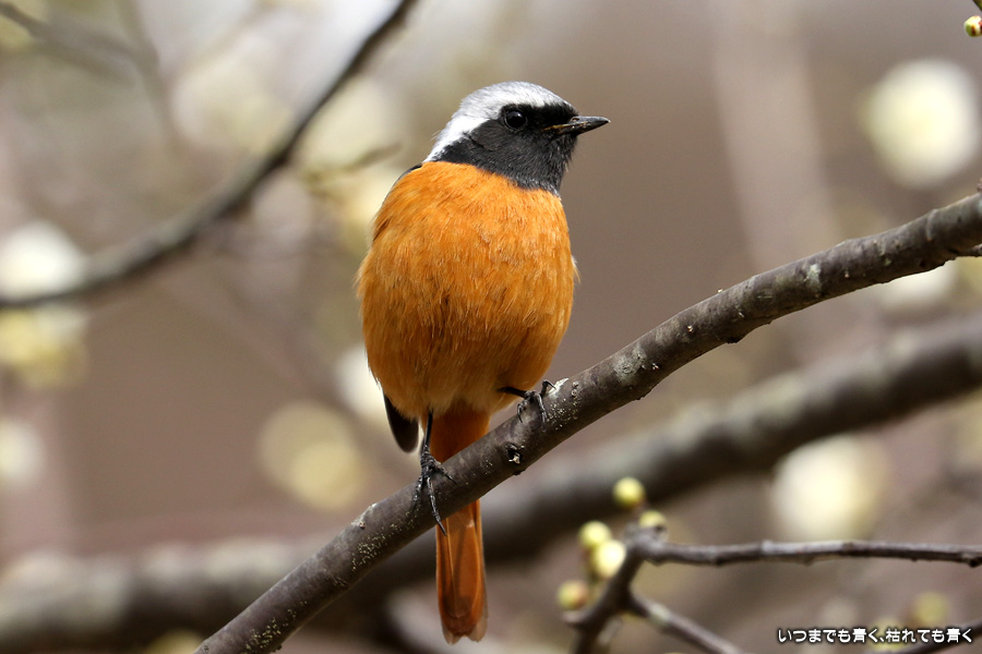 2019年3月24日に撮影した、愛知県豊田市・平芝梅林公園のメジロとジョウビタキの写真です。