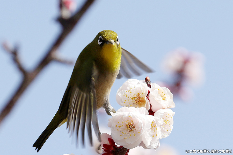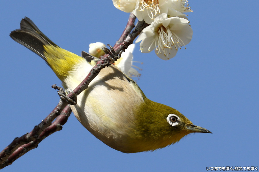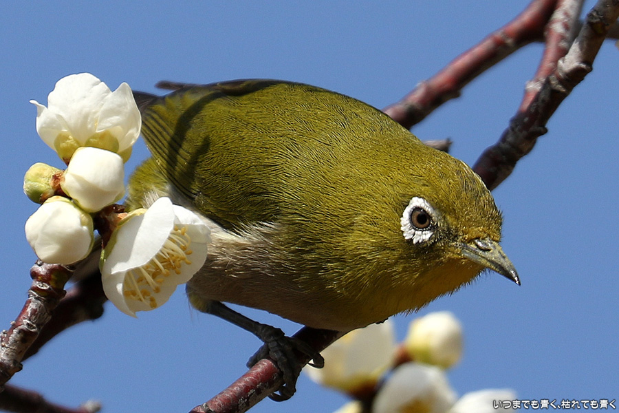 この日は、メジロたちがひっきりなしに集まってくれて、時間を忘れてレンズを向けて4,600枚以上撮影しましたが、素早く動くメジロたちの可愛らしい一瞬を切り取ることができた写真はほんの一部でした。今回は、アップに耐えられる写真を選んでみました。Page2の最後の3枚はジョウビタキです。