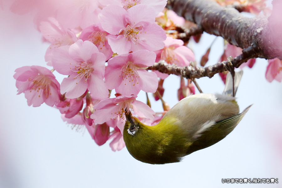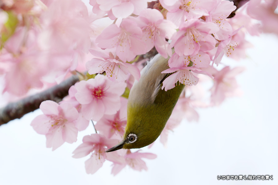 田原市の免々田川の河津桜に集まっていたメジロです。少ししか見つけられなかったので、枚数は少ないですが、いい感じに仕上がりました。