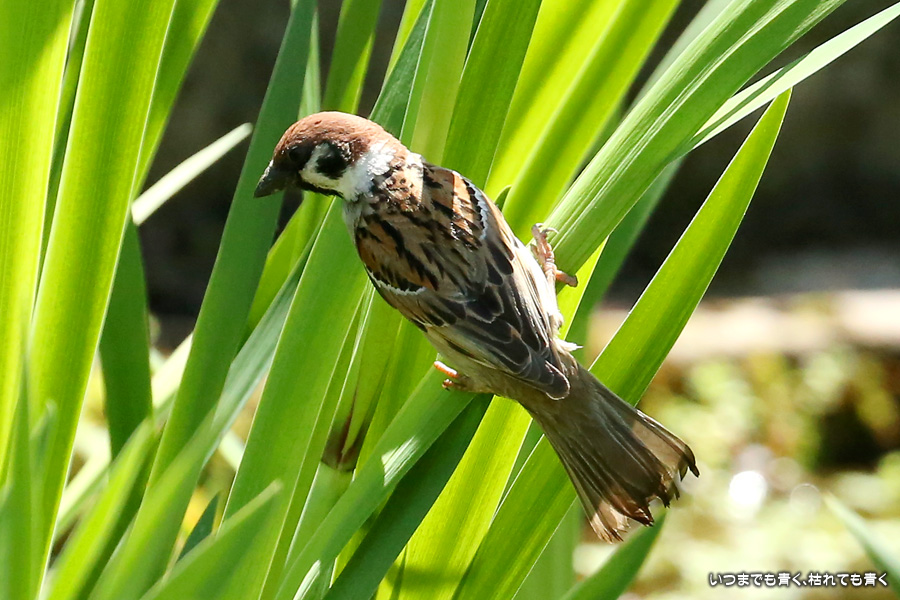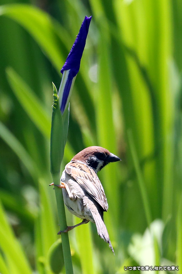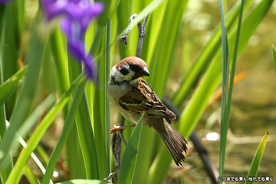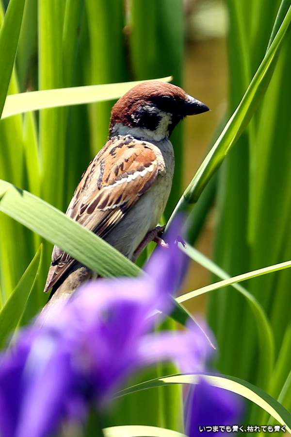 普通ならばスズメなんて撮影しないのですが、かきつばたの撮影に飽きてぼんやりしていた時にスズメが遊びに来たので撮影してみました。かきつばたとの写真だともう少し絵になったのですが、そうはうまくはいきません。顔が黒くつぶれてしまった写真が多かったのが、まだ撮影がヘタッピな証拠です。