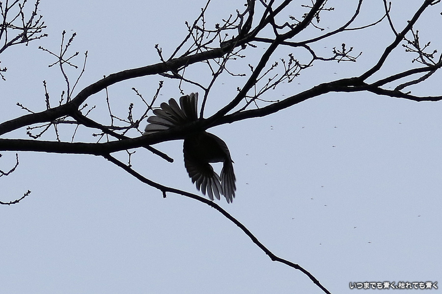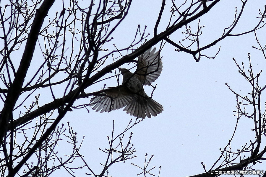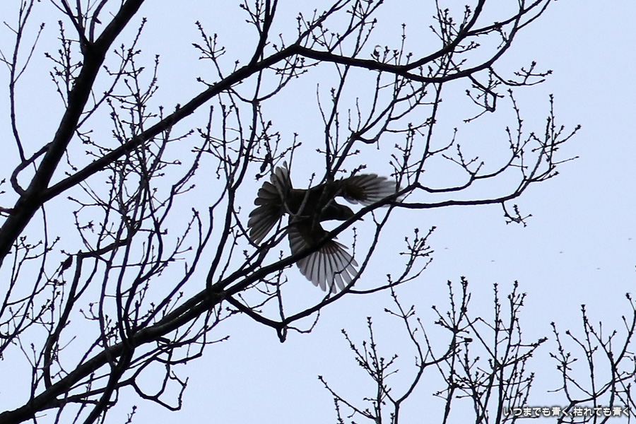 冬の夕刻の曇り空ということで撮影条件は良くありませんでした。メジロやジョウビタキにも会うことができましたがうまく撮れませんでした。羽根を広げて空を飛んでいる写真はすべてヒヨドリです。