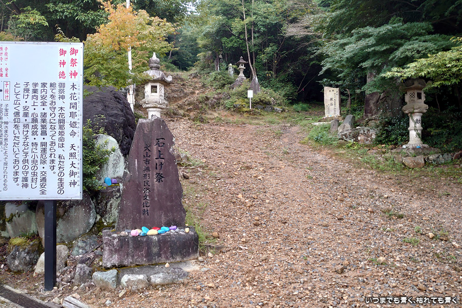 犬山通院の帰りに長女と参拝しました。色玉石を山頂まで運ぶとご利益があるそうです。神社の方に「山頂までどのくらいで登れるのですか」と尋ねたら、「たいしたことないですよ。大人だったら30分くらいで登れます。」と答えていただきましたが、「30分の登山って無理無理」と娘は言っておりました。でも、いつかは登ってみたいものです。