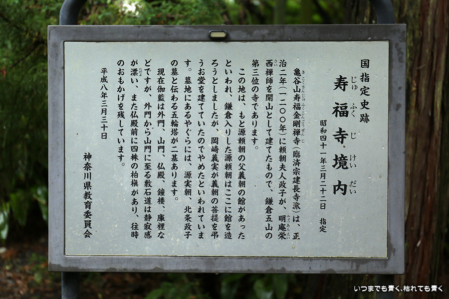 北条政子が開基の寺院です。北条政子と源実朝の墓がある寺院なので訪れました。現在、中門内は非公開で御朱印の対応もありませんが、中門までの参道、政子・実朝の墓のある仏殿背後の墓地の参拝は可能です。高浜虚子の墓もあります。