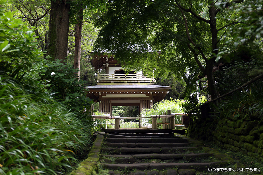 浄智寺は数年前は惣門(高龍門)から山門(鐘楼門)へ続く参道の脇に紫陽花がたくさん咲いていて絵になったのですが、今回は、甘露ノ井まわりのガクアジサイ以外は山門の脇と参道の脇に少しあるだけでした。「東慶寺を見たいがための時間の関係」、「長谷寺と明月院での疲れ」、「外の紫陽花の状況」という理由で中の拝観は断念してしまいましたが、結果的に東慶寺が撮影禁止だったので気力を振り絞って浄智寺を見ておけば良かったかなとちょっと後悔でした。