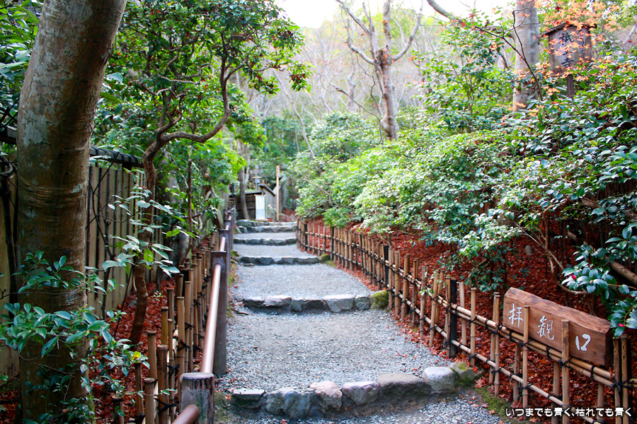 嵯峨野の雰囲気を味わいながら降りていくと、途中に祇王寺があります。祇王寺は、平清盛につかえたふたりの女性の哀れな物語の謂れの場所です。しんとしたたたずまいの尼寺は人の心の移ろいのはかなさを伝えているようにも思えます。