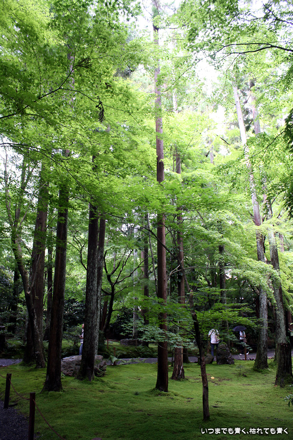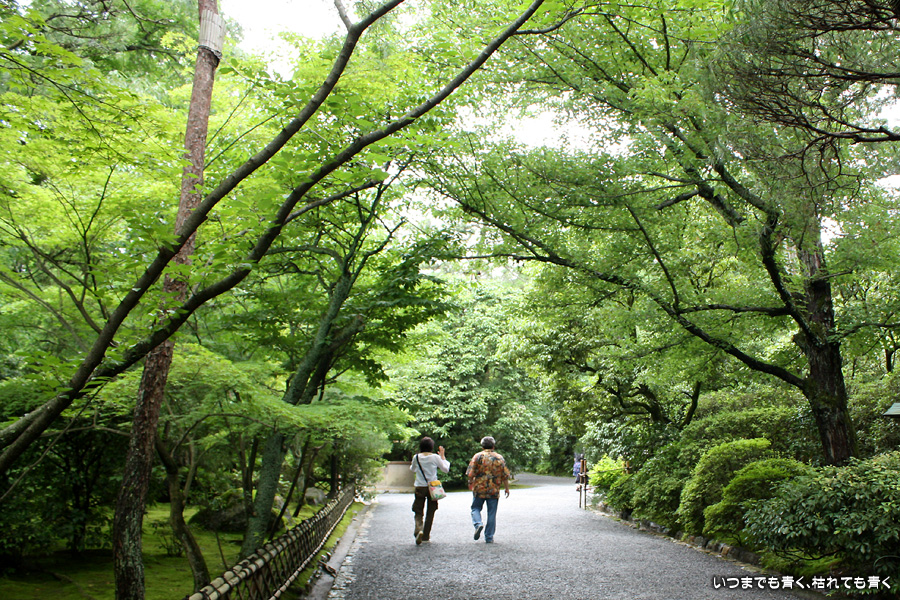 仁和寺から「きぬかけの路」を歩いて龍安寺に向かいます。龍安寺は有名なところなので、過去に来ているかも知れません。でも、忘れてしまっています。若い頃は自分から京都に行きたいと思ったこともありませんでしたし、連れてきてもらっても全然興味なかったですからね。そういう記憶ですので、龍安寺のイメージは「石庭」のみ。来てみてこんなに広いお寺だと初めて知りました。「石庭」は龍安寺の魅力のごく一部、私は庭園の方が味があって好きです。なんといっても緑が美しい。これがすべて紅葉したところを想像すると、絶対にその頃また京都へ、と思ってしまいます。ちなみに龍安寺も世界遺産です。