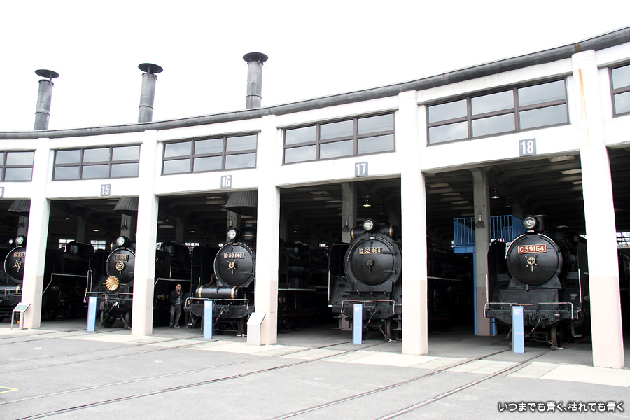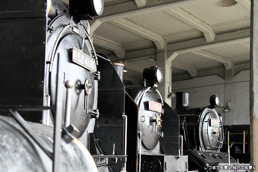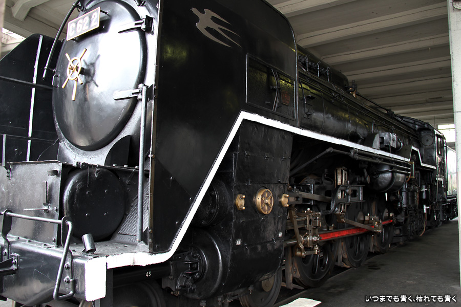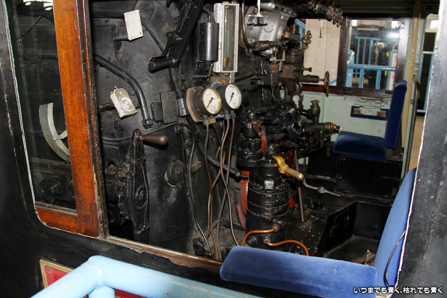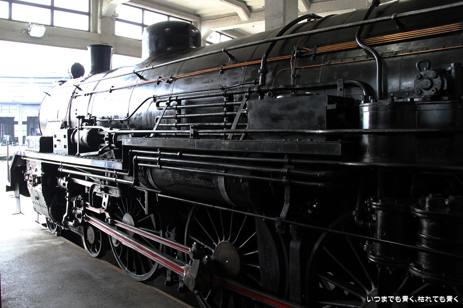 何度か京都に来ていながら一度も訪れたことがかなった梅小路蒸気機関車館。今回はどうしても行きたいと思って、初日の最初の目的地に選びました。京都駅から西に歩いて梅小路公園を抜けてJR(山陰本線)の高架をくぐると、昔の二条駅舎を用いた梅小路蒸気機関車館のエントランスが見えてきます。中は昔の駅舎の雰囲気そのままで懐かしい感じがします。駅舎と扇形機関庫が隣接していて、駅舎の奥から扇形機関庫に入ると多くの蒸気機関車の後姿が目に飛び込んできます。いくつかは機関室に入ることもできます。蒸気機関車も運転士や機関士は大変な重労働だったと思いますが、当時は蒸気機関車の運転士や機関士という職業は誇りだったのかなと思います。私の祖父も蒸気機関車の運転士だったことが誇らしげでしたから。蒸気を発生させ、その蒸気でピストンを動かし、その力をロッドで巨大な動輪に力を伝えて回す、そのメカのしくみや動きはとても魅力的で美しく感じます。