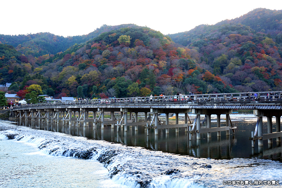 嵐山の紅葉名所を巡ったあとに立ち寄った渡月橋です。ここの写真も撮っておきたいと思って少しの時間写真を撮りました。同じ場所での撮影でしたので、構図的には同じようなものばかり、夕暮れだったので光量も不足、といった写真です。