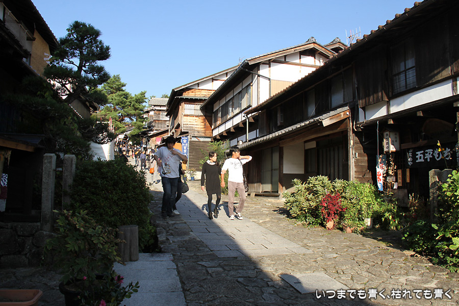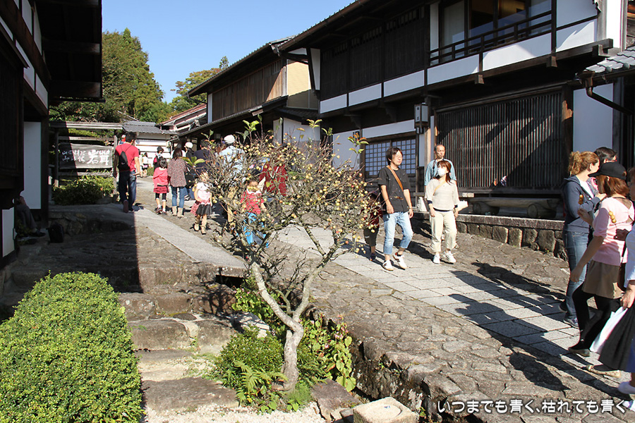 今日はとても良い天気だったので、その陽気に誘われて奥さんと末娘と3人で木曽の山の中、馬籠宿をのんびりと歩いてきました。木曽路の街道は、思っていたよりも細い石畳の坂道で距離もそれほどでもありません。道の両側には古いたたずまいの建物のお店が連なり、たくさんの観光客でとても賑やかです。思っていた旧街道の雰囲気とはちょっと違っていましたが、古い建物や木曽の山々をのんびりと眺めれば、とても落ち着いた気持ちになれました。