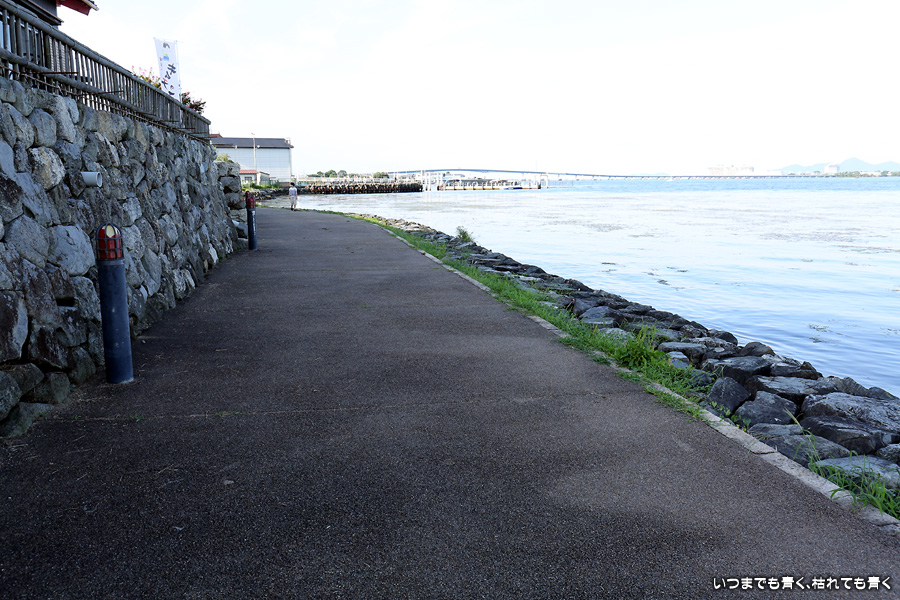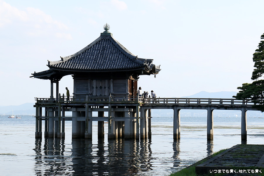 一週間前に来た浮御堂の北側からの写真を撮りたくて今週あらためてやってきました。ここで2時間サスペンスドラマでは最後の謎解きをしたりするシーンに使われます。ここは浮御堂の境内ではなく普通の湖畔道なので、拝観とは関係なく立ち寄って眺めることができます。ロケ地好きにはたまらない場所です。