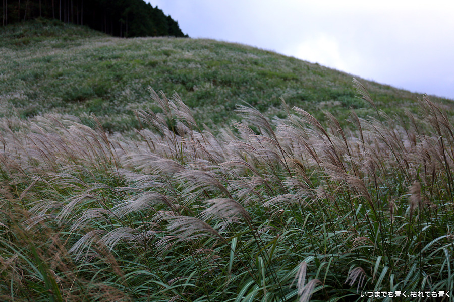 ススキが若い、強風、曇り空の夕暮れ、の三重苦で写真撮影にはイマイチでした。それでなくてもススキは私にとって難しい被写体なので、迷いだらけの写真となりました。一面黄金色になれば壮観なんでしょうね。