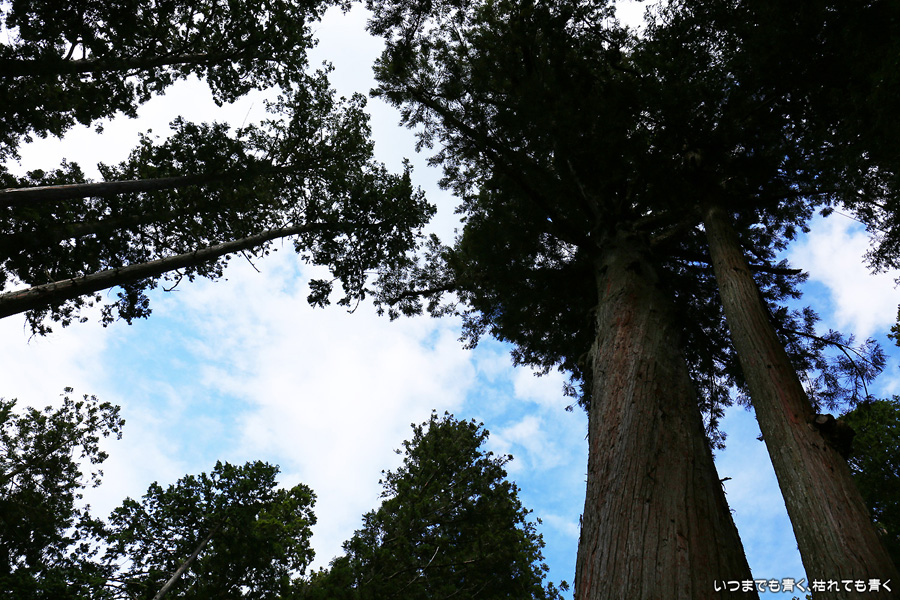 稲橋八幡神社は、広い神社ではありますが、誰もいなくてひっそりとしていました。本殿の前にあるご神木は、スギとヒノキの合体木です。右のヒノキを左のスギが抱きかかえています。スギの樹齢は700年とのこと。合体木は、夫婦和睦、家庭繁栄を表すとのことです。
