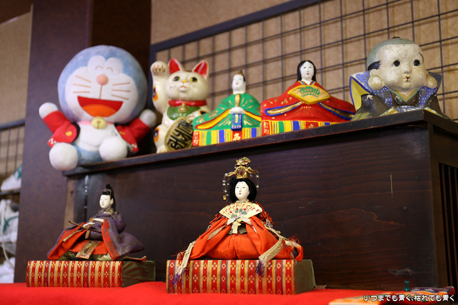 2013年から2016年まで毎年訪れていて、それ以来の久しぶりの訪問でしたが、展示するお宅が少なくなって賑やかさがなくなっていてちょっと寂しい感じでした。会えるのを楽しみにしていた松美屋さんのおばあさんとおひなさんは、体調を崩されているとのことで会えることができませんでした。いつも車を止めさせていただく駐車場の奥さんからいろいろと話を伺いましたが、高齢化が進んでいることや、おひなさんを公開しているお宅には何の手当もないということで、このままだとだんだんとすたれていくと心配されていました。