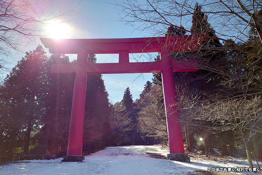 年末に行けなかった砥鹿神社奥宮に行ってきました。暖かくて良い天気なので、年末のような雪はないだろうと思いながらも、今回はスタッドレスタイヤのキャンバスで行きましたが、それが正解でした。本宮山の頂上に向かう道は今回も雪がしっかり残っており、ヴェルファイアではまた引き返さないといけないところでした。最初、奥宮と奥之院(岩戸神社)を間違えて雪山の中に迷い込むところを優しいハイカーの方が教えてくれて助かりましたが、山の中に5つの摂社があるようで、すべて参拝しようとすると山登りが大変そうです。奥宮参拝のあと、途中にある富士山遙拝所からはなんと富士山が見えておりました。スマホしか持っていませんでしたので、写真はぼやっとしか撮れませんでした。