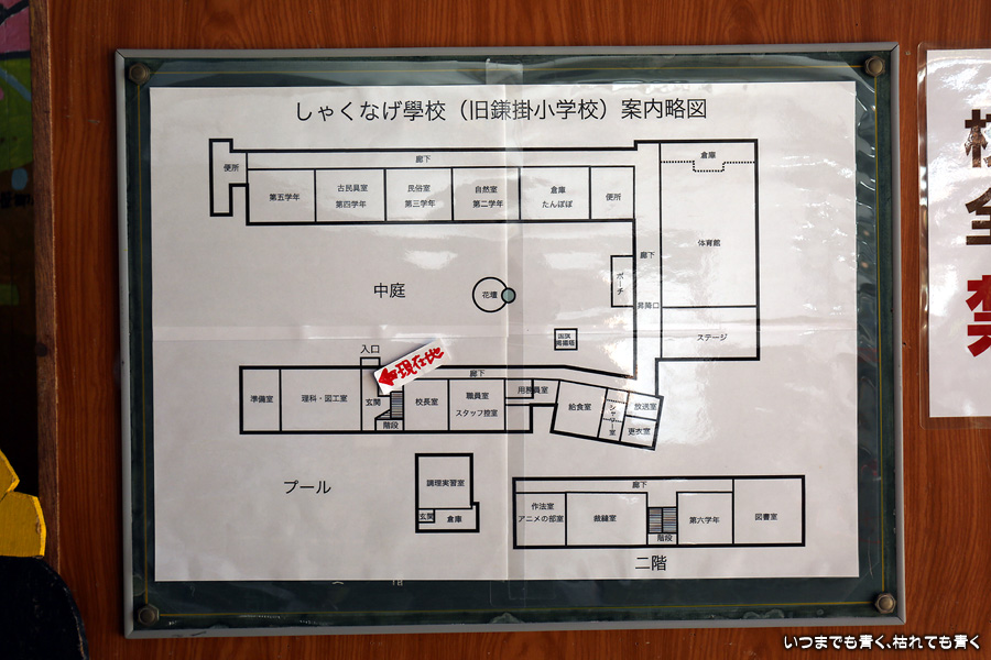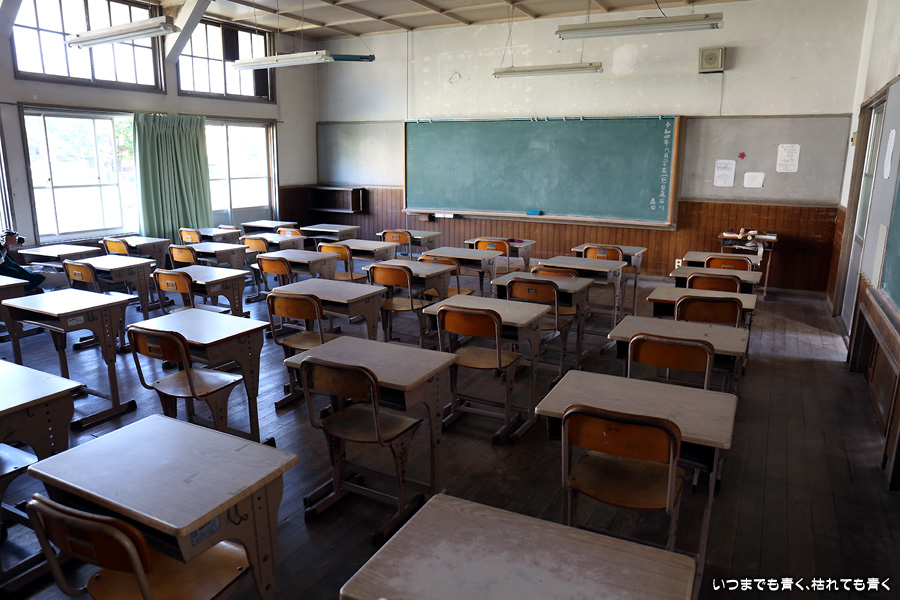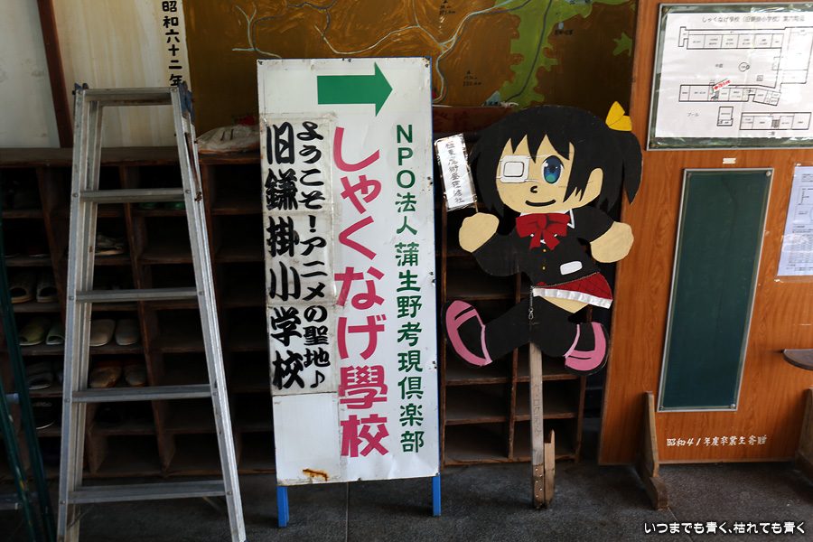 アニメの聖地、旧鎌掛小学校(しゃくなげ学校)です。と言っても、聖地となっているアニメ(中二病でも恋がしたい!)を私はまったく知りませんので、アニメの聖地として特に思い入れがあるというわけではありません。ただ、ドラマや映画のロケ地としても有名で、ロケ地好きの私としては一度は身を置いておくのはいいかなと思って立ち寄りました。この校舎は、2001年まで現役の校舎でした。