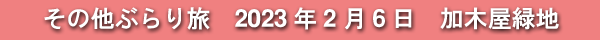 2023年2月6日(月)に訪れた、愛知県東海市・加木屋緑地の写真です。
