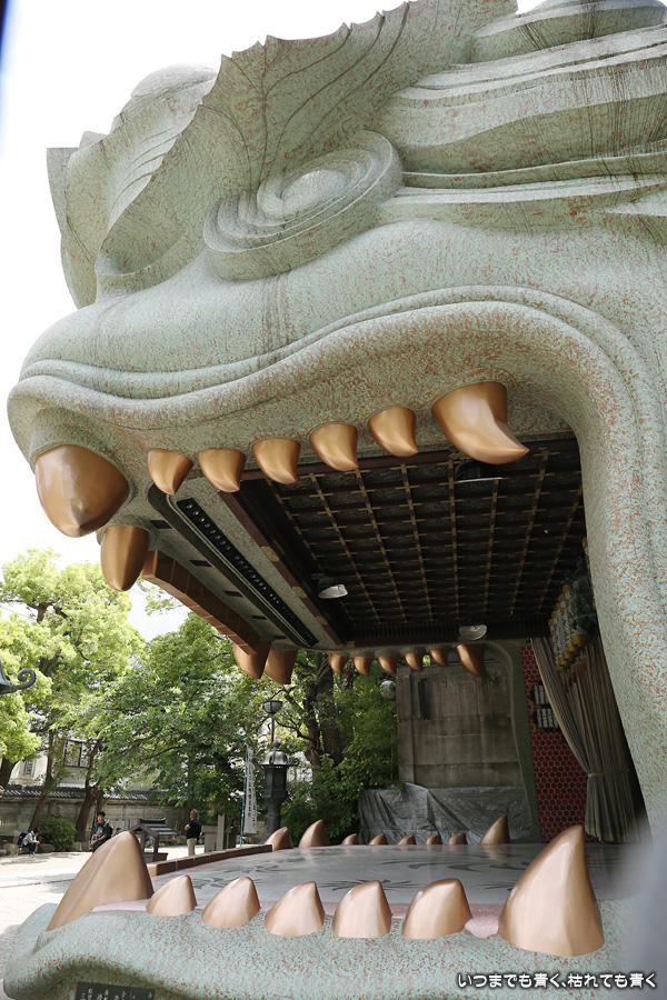 事前に調べて、難波八阪神社の獅子殿(獅子舞台)がパワースポットということなので、一度見ておこうと思って参拝しました。境内に車が止まっていましたが基本的には駐車場は近隣のコインパークを利用することになります。目的の獅子殿は思っていたよりも大きくて立派でした。獅子殿は、大きな口で勝利を呼び、邪気を飲み勝運(商運)を招くと言われており、学業向上、就職、入試、会社発展等の祈願する参拝者が絶えないそうですが、この日の参拝者は外国の方が多くて、本来の参拝目的で来ている人は少なそうでした。